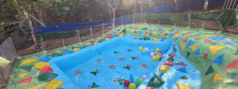 ¡Diversión asegurada! Piscina colorida con pelotas y diseños juguetones para que tu peludo nade y refresque en el entorno campestre.